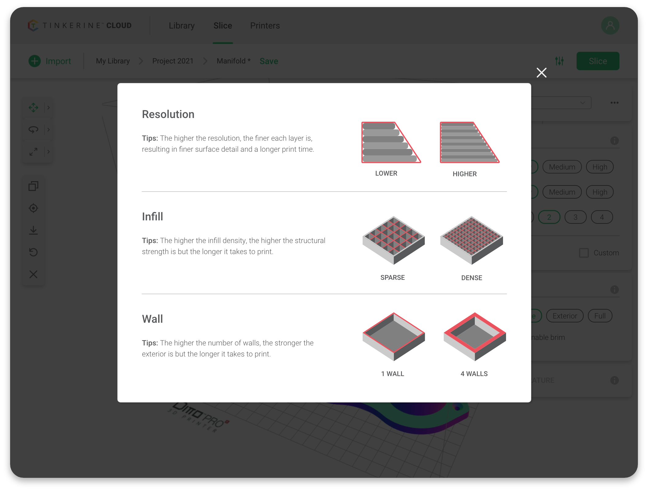 When designing the print settings, options were intentionally limited and most parameters were kept to radio selections or sliders/steppers to avoid overwhelming users. This was a strategic departure from the industry norm of high customizability, which was tailored more toward enthusiasts and engineers as opposed to educators.